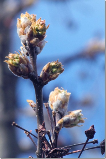 On 04 March, I was out in the backyard looking at the trees, looking for signs of spring. Some of the trees were just bare sticks, but one was showing signs of budding. I took this picture, that right now is at the top of the sidebar, but that top pic frequently gets changed, so I’ll show it again here.