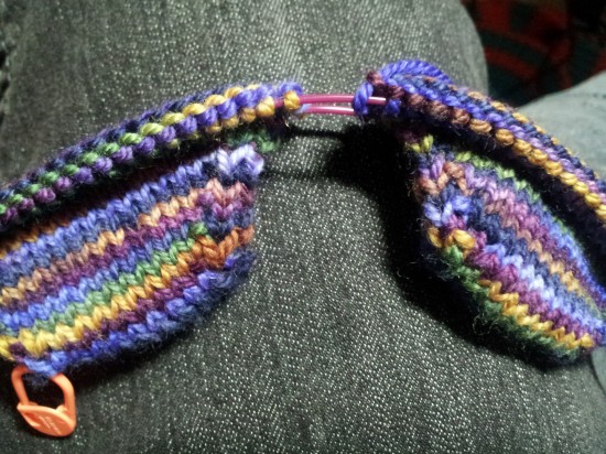 The yarn “cakes” from yesterday are sock toes today. I almost always do them toe-up and the first inch or so is such a pain in the ass – but I really do prefer this method. It’ll get easier when I get past this fiddly part!