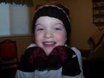 But I did do a quick project. When daughter was here about 2 or 3 weeks ago, she said that the little girl that lives across the street from her loves the mittens that I knit last year for K’s boys, and she really would like a pair. I had her draw around Alex’s hand on a piece of paper so I had an idea for size, found the pattern I used for the boys’ pairs and made a pair for her, and a hat to go with it.