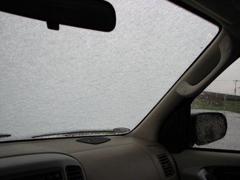 Took a picture this week, sitting inside my vehicle, waiting for the defrosters to heat up and start working to clear the glass of the SNOW that had fallen during the day while I was at work. Now we don’t get a lot of snow here – some areas get SOOOOO much more. That’s fine with me. It’s not that I dislike snow so intensely – it’s that I dislike having to drive or travel in it on roads where idiots are also allowed to drive. Apparently here, for each snowflake that falls, so also does the IQ of each driver, on a one-to-one ratio.